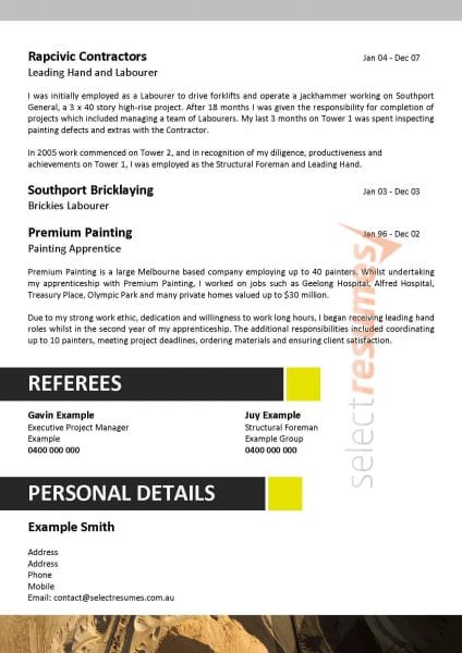 • Each design template from Select Resumes can be customised to suit your preferences, including transforming resume designs with full front-page images into a quarter-page banner instead, or colour and font changes